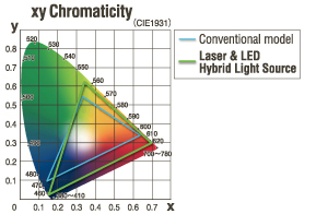 Cải tiến lớn về độ tinh khiết màu nhờ nguồn sáng mới đã cải thiện đáng kể khả năng tái tạo màu. Không chỉ màu rõ hơn và đẹp hơn mà cả hình ảnh được chiếu trông cũng sáng hơn nhờ những hiệu ứng trực quan của màu có độ tinh khiết cao.